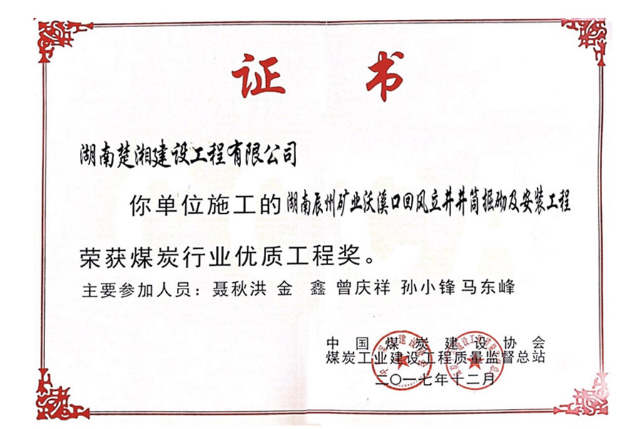 煤炭行業優質工程-茶山嶺煤礦主斜井井筒工程